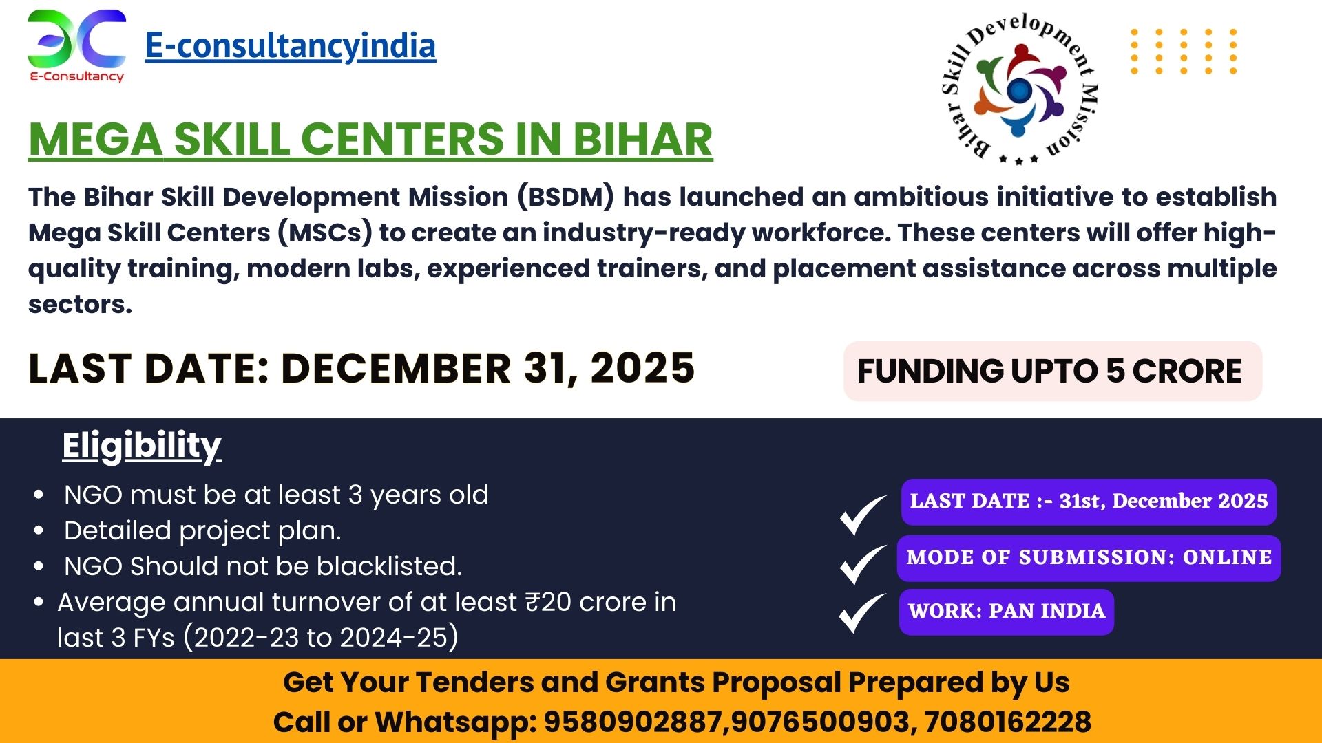 To give impetus to skill initiatives in the State, DSDE intends to empanel Training Providers (“TPs”) to provide a) high-end skill training – Inside State; high-end skill training – Outside State c) Drone Pilot Training; and International Language Training to the youth of the state.The empanelment of training providers shall be based on evaluation of the technical and financial capability of Bidders.Bidders selected for empanelment pursuant to this RFP may be allocated work to impart skills training in any location/s inside or outside the State of Arunachal Pradesh. Costing of sanctioned work shall be determined in accordance with the Common Cost Norms notified by the Ministry of Skill Development and Entrepreneurship, Government of India (As applicable at the time of training) oras notified by Department of Skill Development & Entrepreneurship (DSDE)after consultation with Department of Planning & Investment and Finance, Government of Arunachal Pradesh from time to time.The objective of this RFP is also to empanel a diverse set of training providers which may be engaged in various skill development programmes in the State.